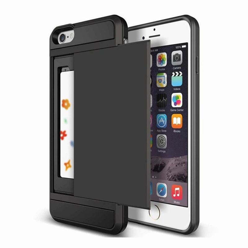 discount Slide Card Slot Holder Phone Case for iPhone 11 Pro XS Max XR 7 8 Plus X Armor Silicone Back Cover
