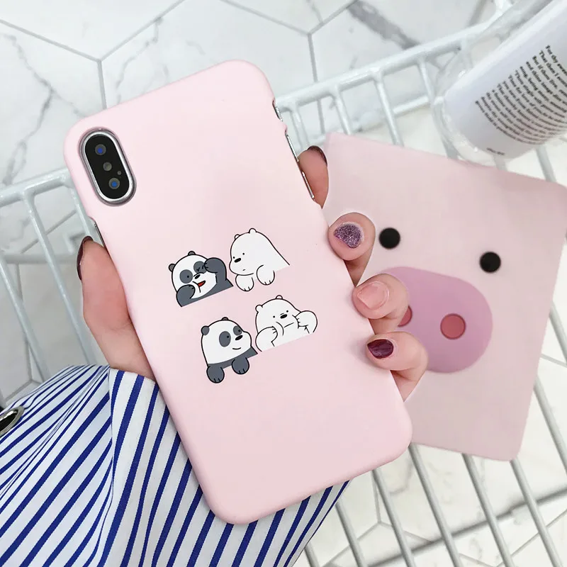 awesome Cute Baby Panda Bear Pattern Case For iPhone X 8 8Plus XR XS Max Pink Phone Case Hard Plastic Back