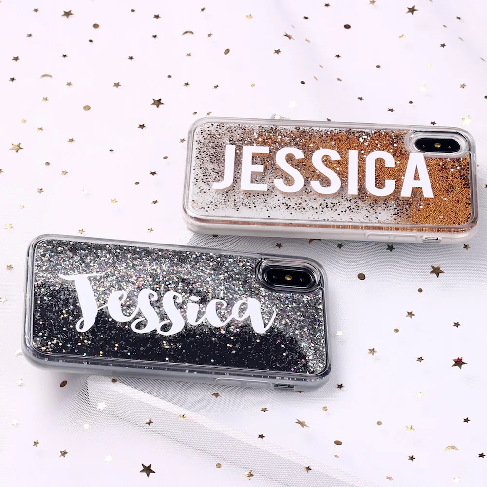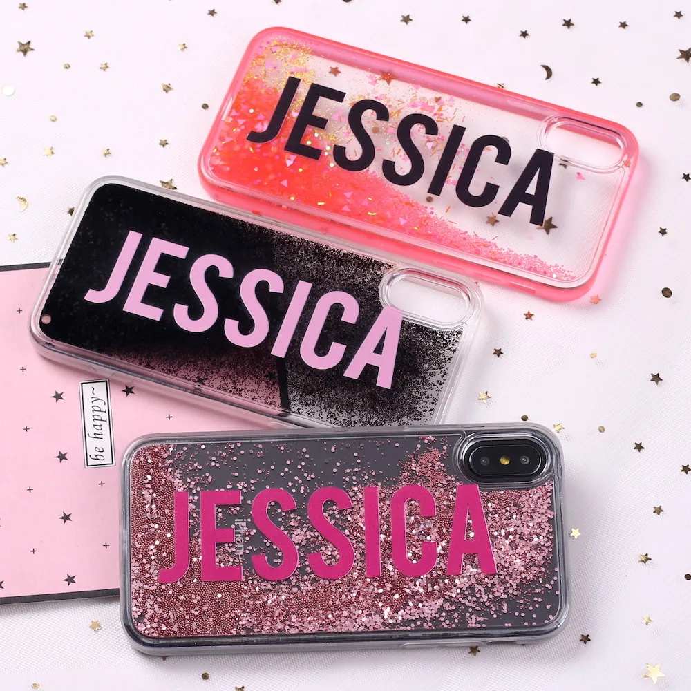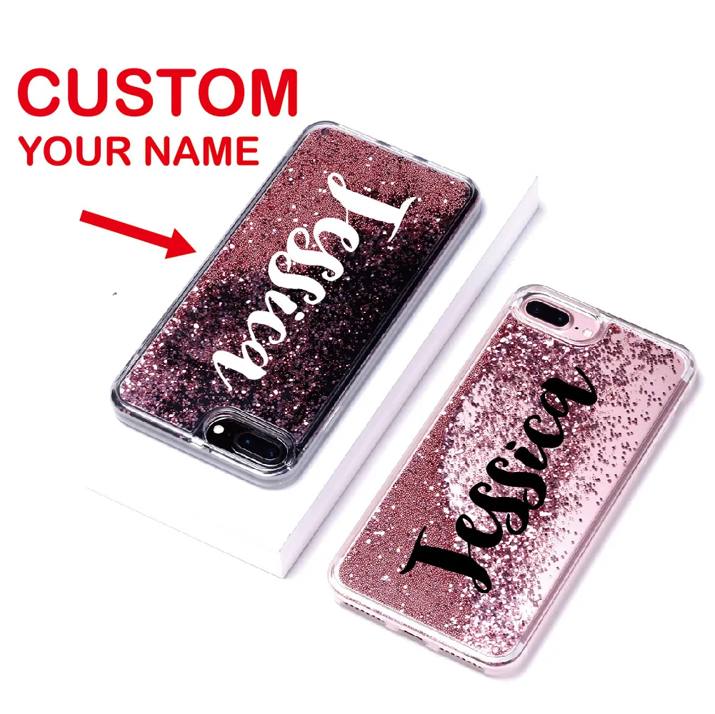 amazing Liquid Glitter Sparkle Rose Gold Name Letters For iPhone 11 Pro 6S XS Max 7 7Plus 8 8Plus X Soft Ph