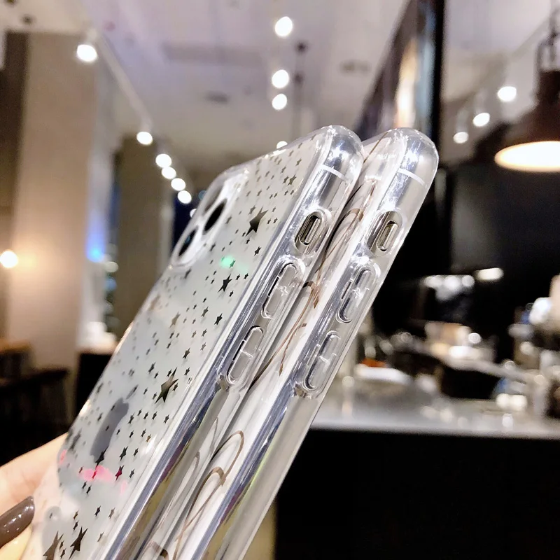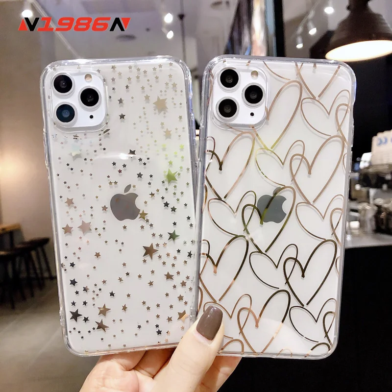 astounding N1986N For iPhone 11 Pro X XR XS Max 6 6s 7 8 Plus Phone Case Luxury Electroplated Love Heart Clear