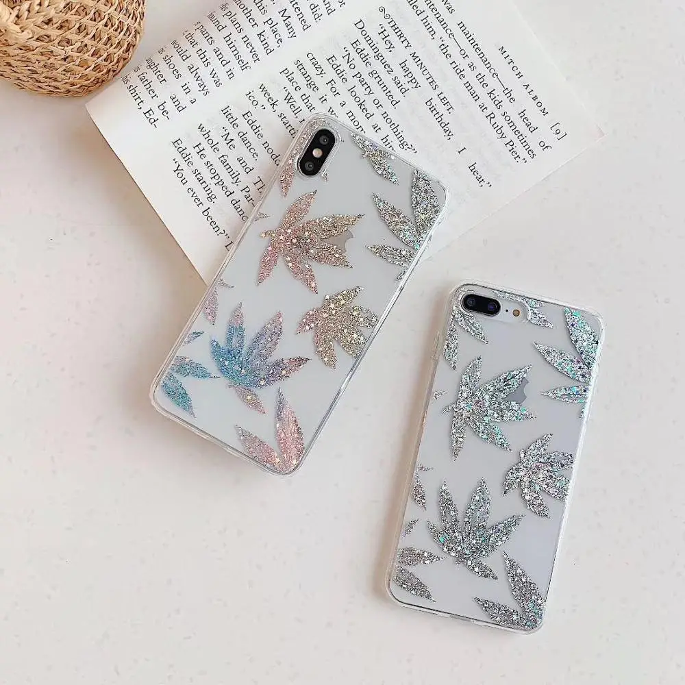 wonderful Luxury Glitter Transparent Case For iPhone 8 7 Plus X XS Max XR 11 Pro Max Gold Leaf Clear Back Cov